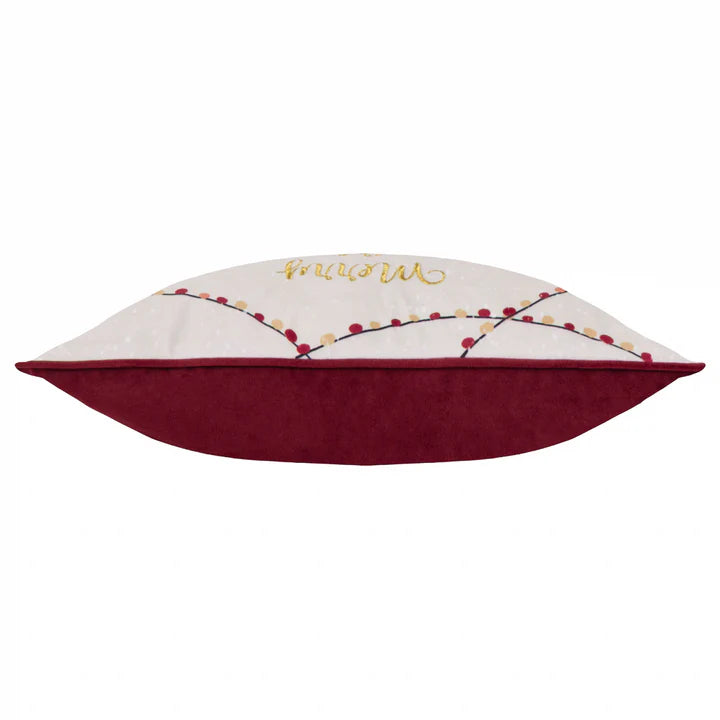 Joy To All Embroidered Velvet Cushion Snow Berry